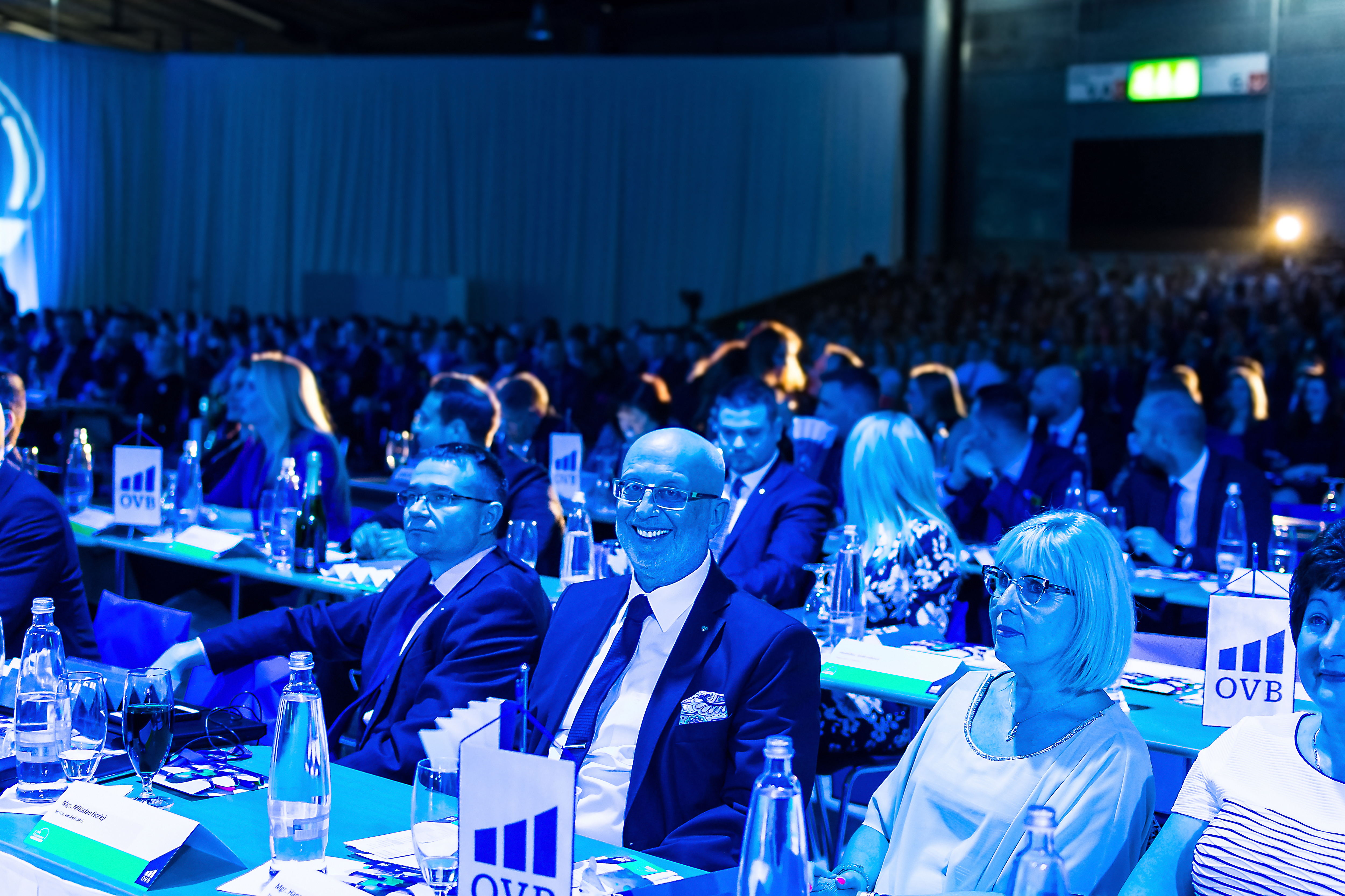 Druhou část konference odstartovala zpěvačka Olga Lounová, která kromě průřezu světovými hity zazpívala tři vlastní písně, a dokonce vytáhla část spolupracovníků na pódium, aby si s ní zatančili. Sál byl výtečně naladěn a mohl tak pokročit k dalšímu oceňování, milionářům. Těch bylo, vzhledem k úspěšnému roku 2018, celých 17! Následně byl čas povyšování a těmi šťastnými byli oblastní ředitel= Marek Aberl a Pavel Turek. Neméně důležitou kategorií pak bylo ocenění spolupracovníků na pozicích GST a BL v rámci nejvyšší proplacenosti smluv, kde se nejvyšší hodnoty po stanovení přísných kritérií šplhaly až k neuvěřitelným 97 %! A protože nedlouho předtím bylo ukončeno hlasování spolupracovníků o nejlepší partnerský servis a produkt, přišel čas na ocenění partnerů. Moderátor konference dostal jména vítězů v obálce a postupně pozval vítězné zástupce společností na pódium. Druhou část programu pak ukončil projev Ing. Jaroslava Besperáta, generálního ředitele České podnikatelské pojišťovny, která se stala vítězem ankety „Nejlepší produkt“. Ve své řeči ocenil práci spolupracovníků OVB, bilancoval současné změny na finančně poradenském trhu a samozřejmě nezapomněl poděkovat za důvěru, díky které mohla jeho společnost v této anketě zvítězit.